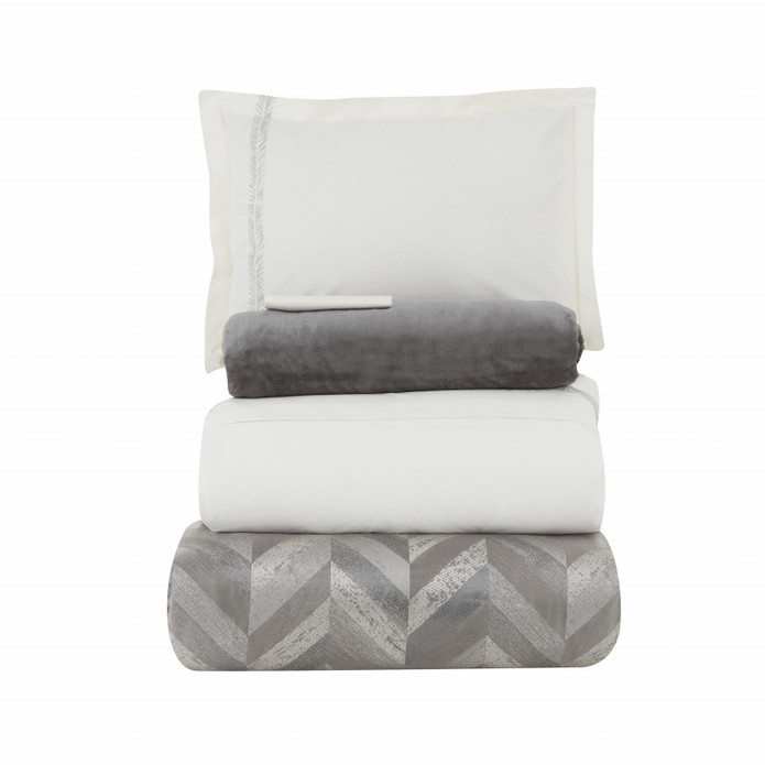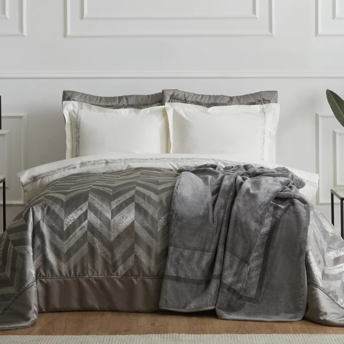 روکش لحاف گلدوزی شده: ۲۰۰x۲۲۰ سانتیمتر ملحفه: ۲۴۰x۲۶۰ سانتیمتر روبالشی گلدوزی شده: ۵۰x۷۰ سانتیمتر (۲ تکه) پتو اسپانیایی: ۲۰۰x۲۲۰ سانتیمتر روتختی: ۲۷۰x۲۶۰ سانتیمتر