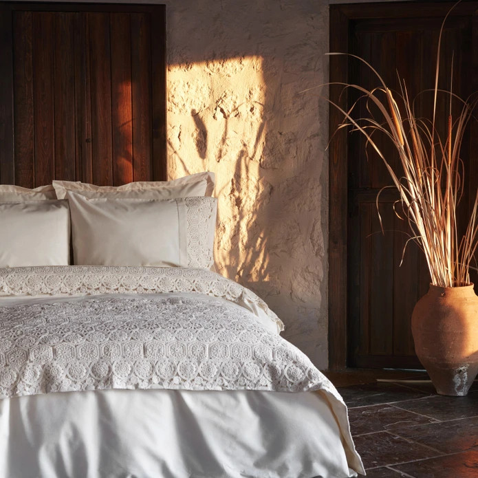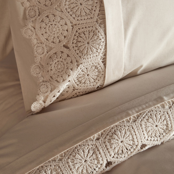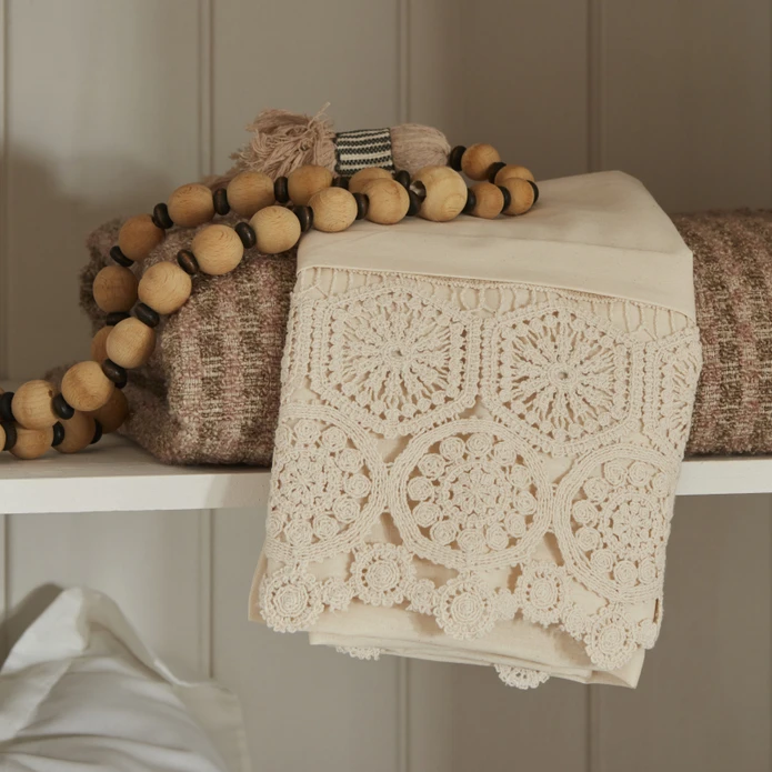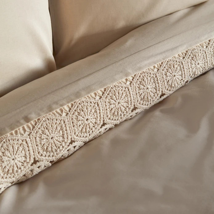 محتویات مجموعه روکش لحاف توری: ۲۰۰x۲۲۰ سانتیمتر ملحفه طرحدار: ۲۴۰x۲۶۰ سانتیمتر روبالشی توری: ۵۰x۷۰ سانتیمتر (۲ عدد) روبالشی چیندار: ۵۰x۷۰ سانتیمتر (۲ عدد) روتختی توری: ۸۰x۲۴۰ سانتیمتر جنس: ۱۰۰٪ پنبه