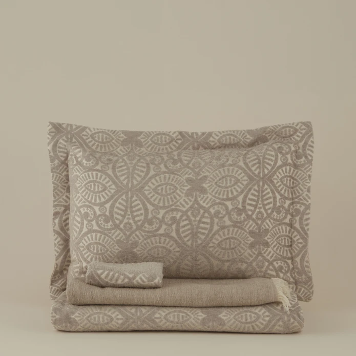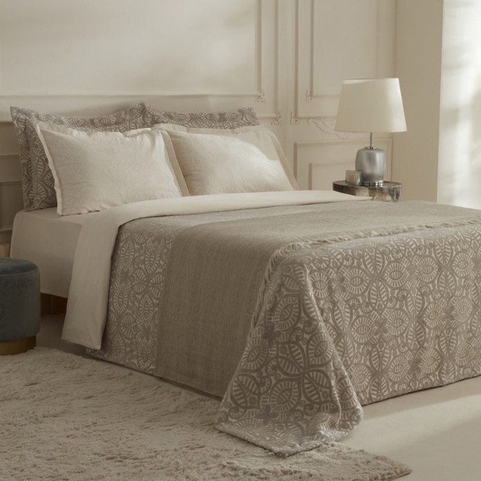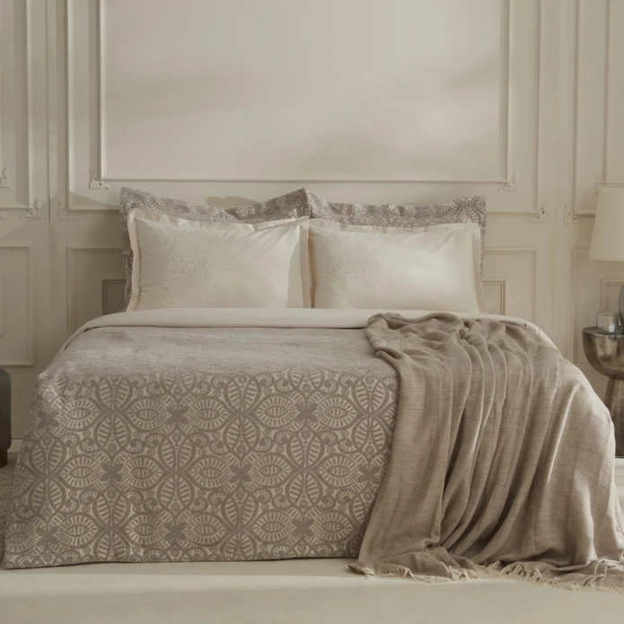 محتویات روکش لحاف ژاکارد تکسبام: ۲۰۰ سانتیمتر در ۲۲۰ سانتیمتر ملحفه: ۲۴۰ سانتیمتر در ۲۶۰ سانتیمتر روبالشی فلاتر: ۵۰ سانتیمتر در ۷۰ سانتیمتر (۲ تکه) روتختی چنیل: ۲۶۰ سانتیمتر در ۲۷۰ سانتیمتر روبالشی چنیل: ۵۰ سانتیمتر در ۷۰ سانتیمتر (۲ تکه) پتو اکریلیک: ۲۰۰ سانتیمتر در ۲۲۰ سانتیمتر جنس: نخ ۶۱ - پرکال ۱۰۰٪ پنبه روتختی: ۱۰۰٪ پلیاتیلن