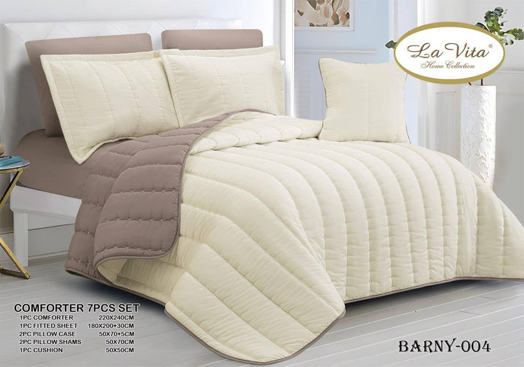 رو تختی دو نفره دو رویه نسکافه ای کرمی ۷ تکه برند lavita home مدل barny-003
