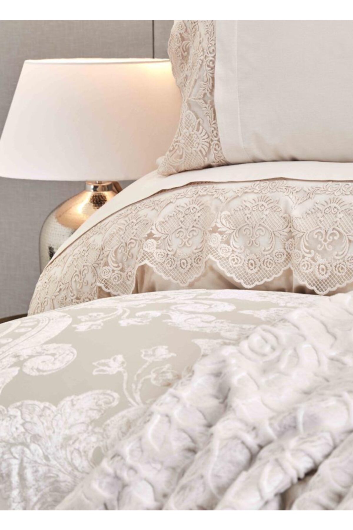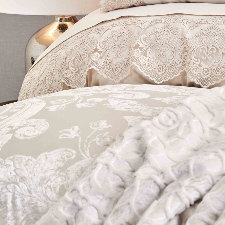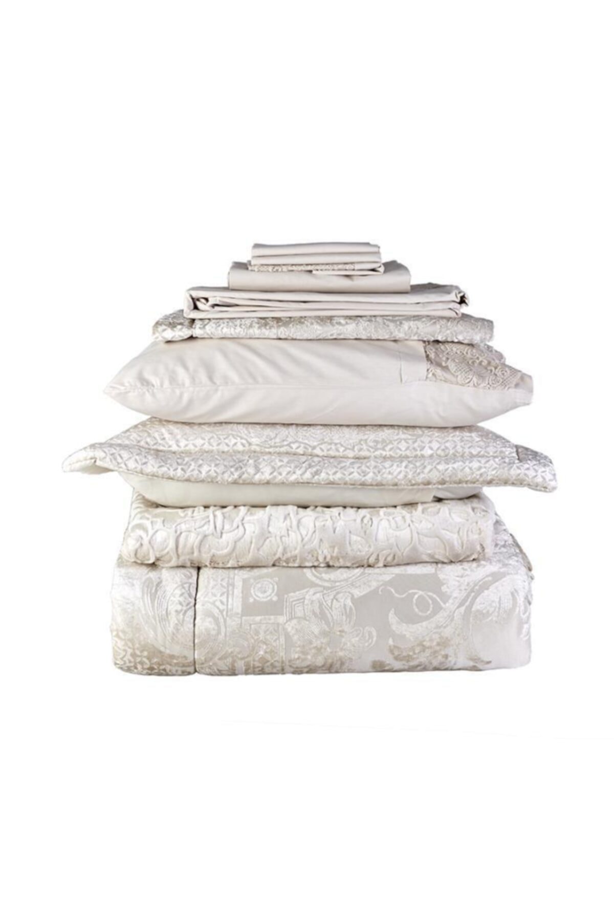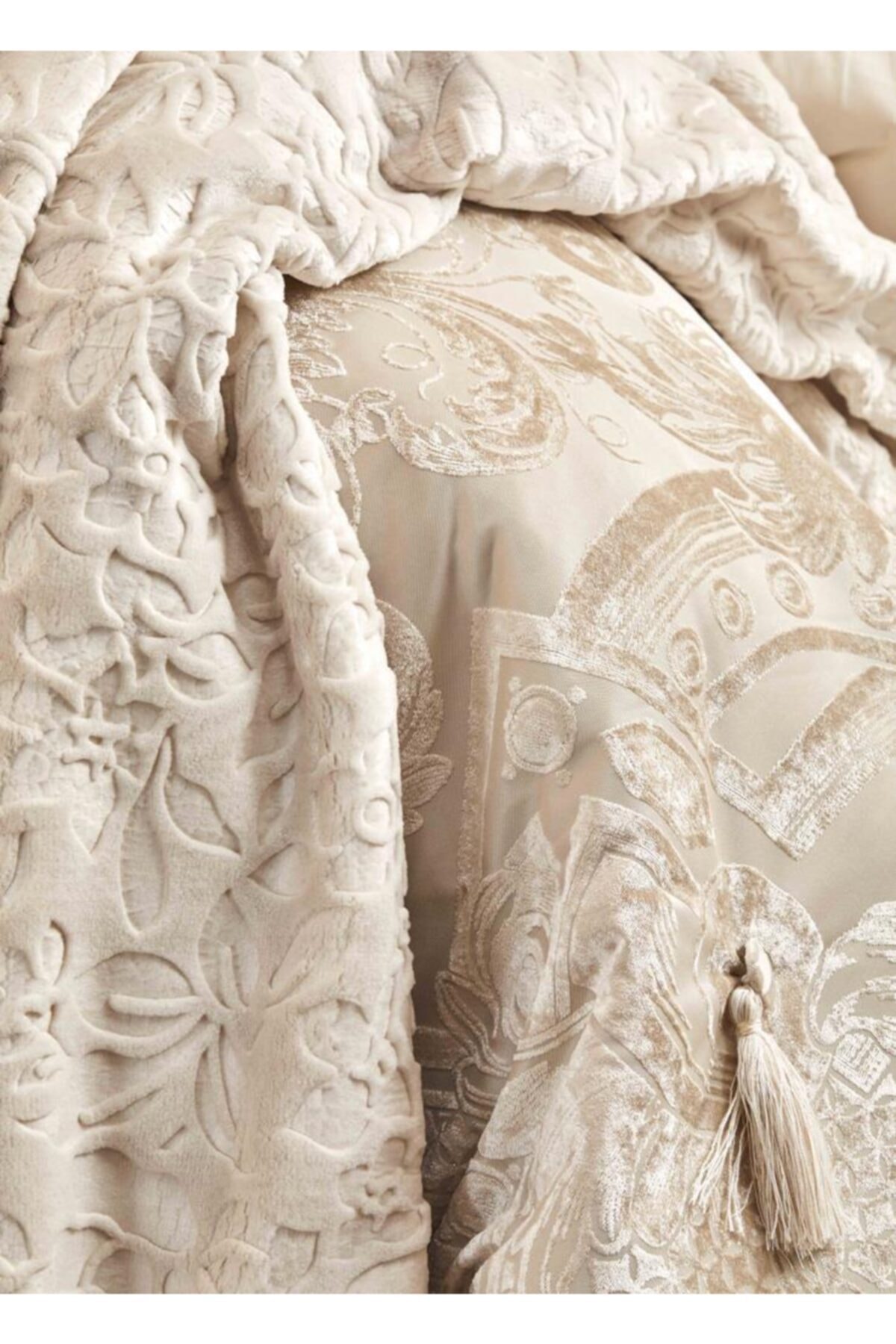 روتختی دو نفره ۱۰ پارچه ژاکارد مخمل برجسته برند Karaca Home مدل Valeria Royal Gold